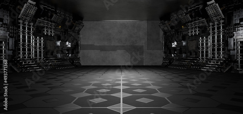Fototapeta premium Empty Futuristic Empty Hallway Corridor Room Garage Studio Dance Glowing...