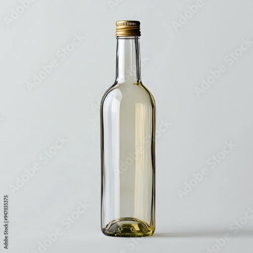 © Hammam, Fototapeta premium Empty Glass Wine Bottle with Gold Screw Cap on a White Background