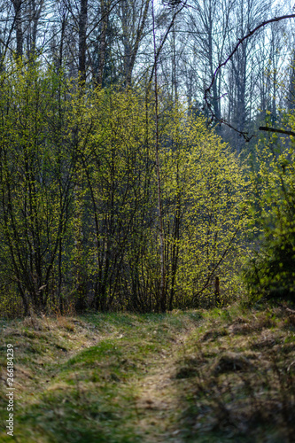 © Martins Vanags, Fototapeta premium empty gravel dust road in forest with sun rays and shadows