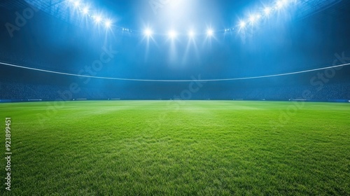 © Anak, Obraz premium Empty Green Soccer Field Under Stadium Lights