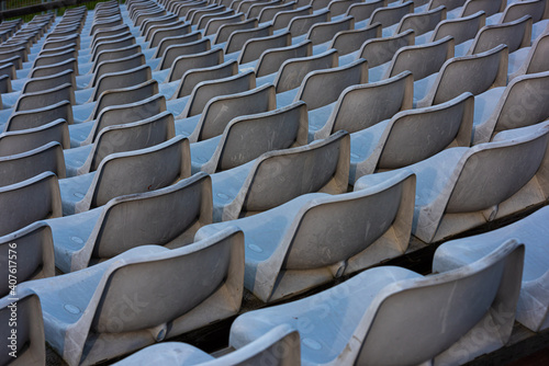 Fototapeta premium Empty grey seats on a seating tribune.