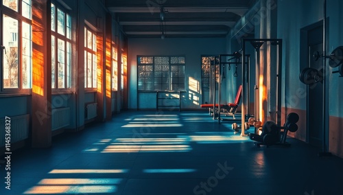 Fototapeta premium Empty Gym With Sunlight Streaming Through Windows