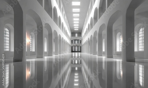 Fototapeta premium Empty Hallway with Arches and Reflection