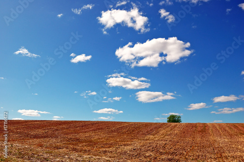 © Cousin_Avi, Fototapeta premium Empty harvested field under cloudy blue sky