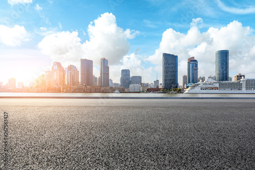 © ABCDstock, Fototapeta premium Empty highway and modern city skyline in Shanghai