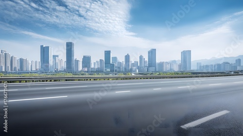 © stock.finder, Obraz premium Empty Highway Asphalt Road Qingdao City Skyline Modern Buildings