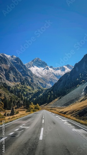 Fototapeta premium Empty highway between mountain peaks, clear sunny day, incredible nature,...