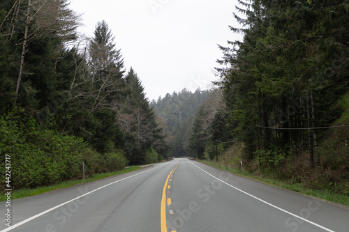 © be free, Naklejka premium Empty highway road through forest trees in Oregon, USA