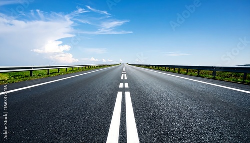 © Angel, Fototapeta premium Empty highway stretches into a bright blue sky