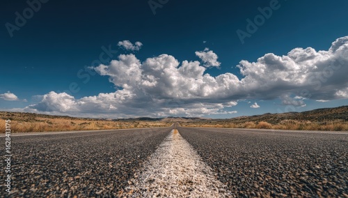 Fototapeta premium Empty highway stretches into a vast, sunny sky
