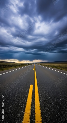 Naklejka premium Empty Highway Stretching Under Dramatic Storm Clouds.