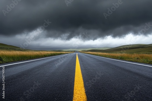 © HrdiGn Std, Naklejka premium Empty highway under a dark sky