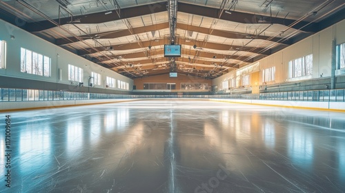 © Joyce, Fototapeta premium Empty ice skating rink wide view.