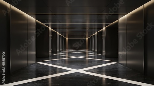 © BRNSN, Obraz premium Empty illuminated corridor interior design