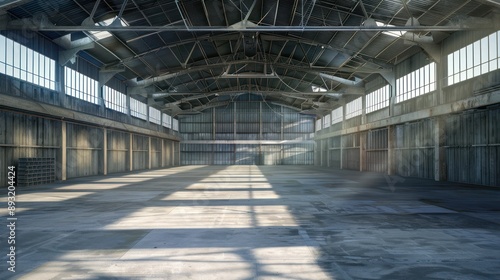 Fototapeta premium Empty Industrial Hangar with Natural Light