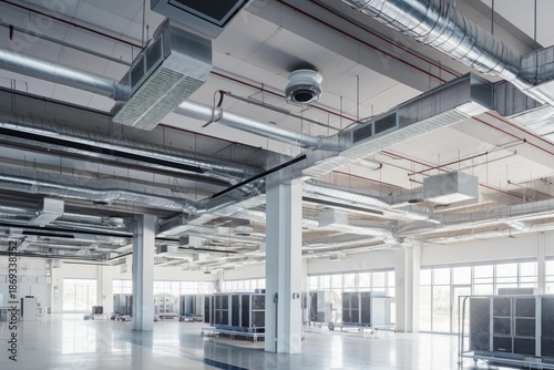 Obraz premium Empty industrial space showcasing modern hvac ventilation and air...