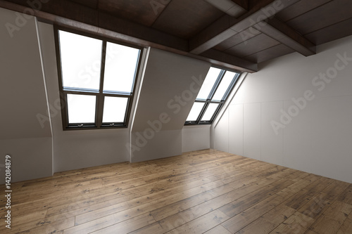 © XtravaganT, Obraz premium Empty interior of a converted attic