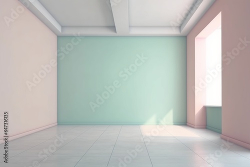 Fototapeta premium Empty light pastel room with a window. Generative AI
