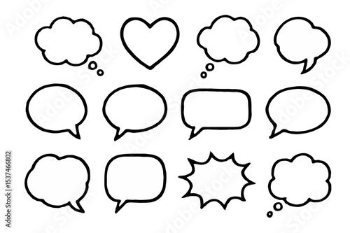 © M.Hanzala Nizam, Fototapeta premium Empty Line Speech Bubbles Set Vector Illustration of Chat and Dialog Frames