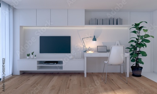 © SOMPETCH, Fototapeta premium Empty Living Room interior TV wall. 3D rendering.