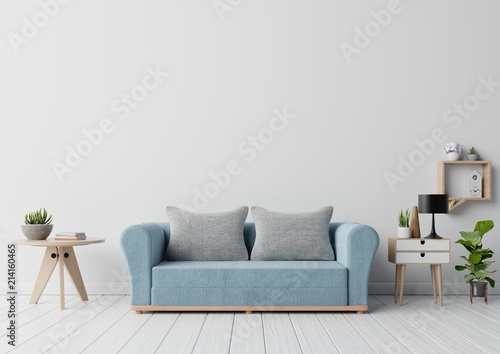 Fototapeta premium Empty living room with sofa ,lamp,cabinet,plants,and white wall in the...