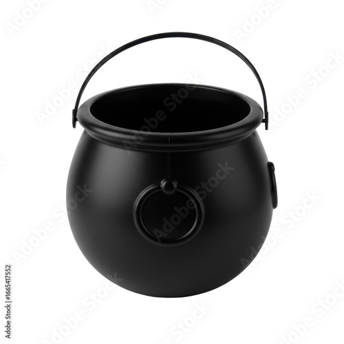 © Martti, Fototapeta premium Empty, matte black plastic cauldron-shaped candy bucket, perfectly clean, on a seamless infinite white studio background. Soft, shadowless lighting, high angle. Concept of pristine product