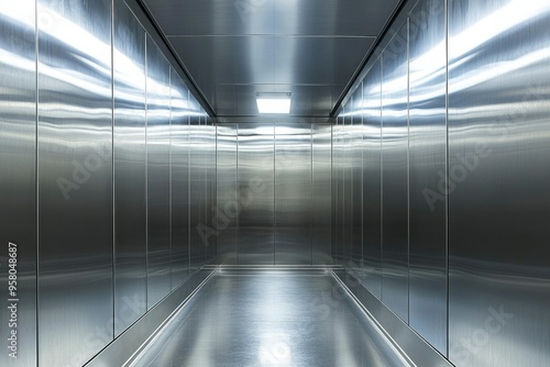 Obraz premium Empty Metallic Corridor with a Single Light Fixture