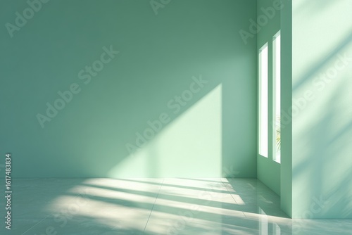 © Gelas, Obraz premium Empty mint green room with sunlight (1)