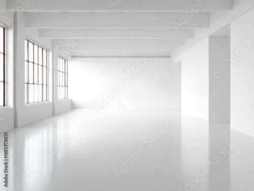 Fototapeta premium Empty modern gallery space with large windows and natural light