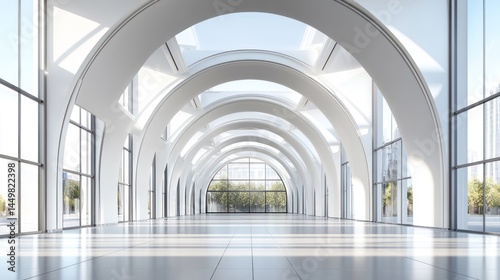 © Anak, Fototapeta premium Empty, modern hall with arched ceilings and large windows.