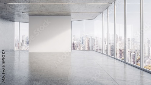 Fototapeta premium Empty modern loft with city view