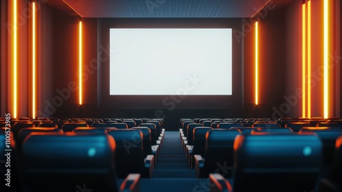 © Влада Яковенко, Obraz premium Empty modern movie theatre interior with screen and seats