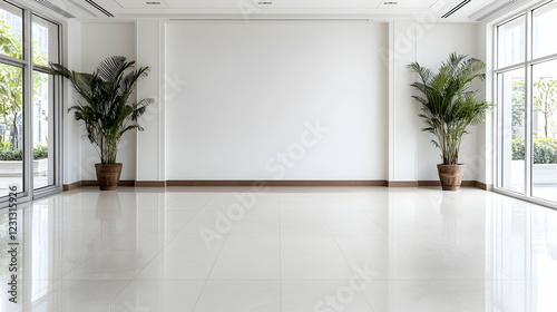 © BROPRADANA, Fototapeta premium Empty modern office lobby with plants and large windows