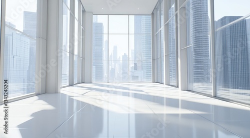 © Muhammad, Obraz premium Empty modern office space with city view (1)