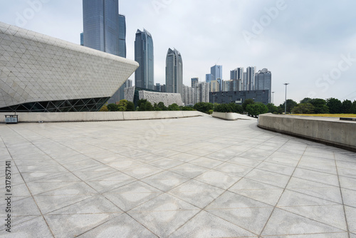 Fototapeta premium empty, modern square and skyscrapers in modern city