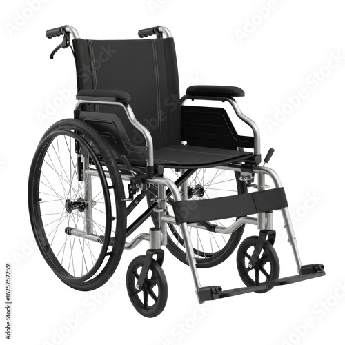 Fototapeta premium Empty, modern wheelchair with a black seat and silver frame, perfect for...