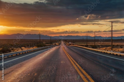 © Anton Pentegov, Fototapeta premium Empty mountain road at sunset