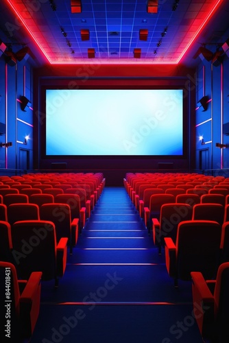 © Ivy, Fototapeta premium Empty Movie Theater Interior with Big White Screen