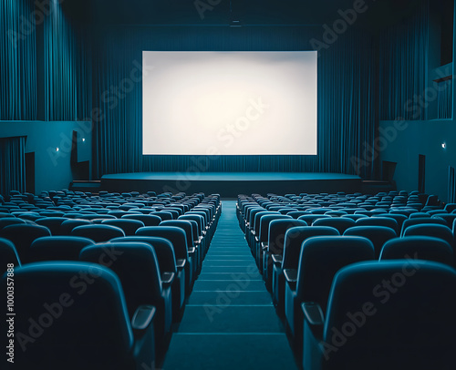 © Mahmud, Fototapeta premium Empty Movie Theater with Blank Screen