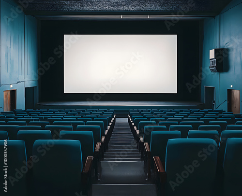 © Mahmud, Fototapeta premium Empty Movie Theater with Blank Screen