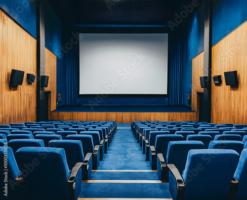 © Mahmud, Fototapeta premium Empty Movie Theater with Blank Screen