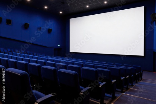 © Erin, Fototapeta premium Empty movie theater with blue seats