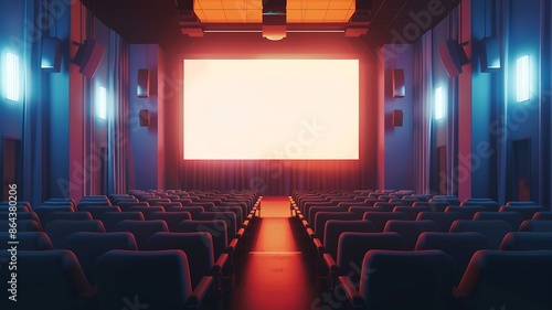 © Vectonessa, Obraz premium Empty movie theater with illuminated screen dark room