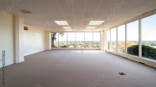© BROPRADANA, Obraz premium Empty office panoramic view, autumn landscape