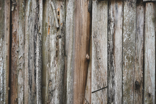 © surasak, Obraz premium Empty old dry brown mix wood wall seamless background for product montage.Vertical.