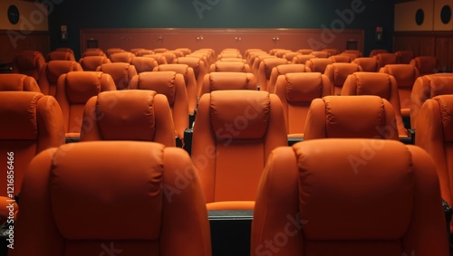 © Cozy Coffee Bar, Fototapeta premium Empty Orange Theater Seating Arrangement