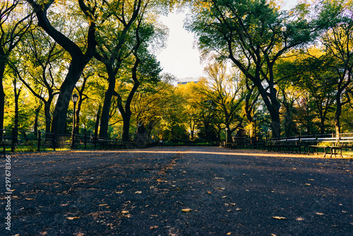 © Roman, Obraz premium Empty Park surrounded by trees