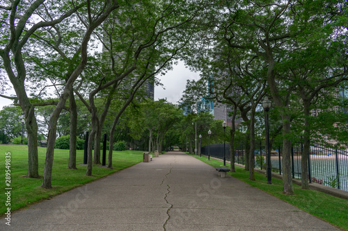Fototapeta premium Empty Path at Olive Park in Streeterville Chicago