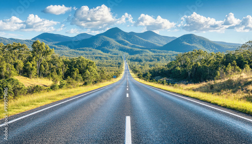 © ЮРИЙ ПОЗДНИКОВ, Naklejka premium Empty paved road leading to mountains in australia