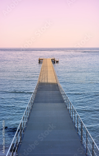 © MaciejBledowski, Obraz premium Empty pier at purple sunset.